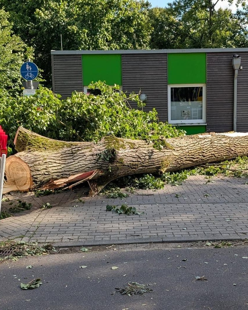 Leider hat der Sturm gestern so stark gewütet, dass zwei Bäume auf das Dach gestürzt sind und der Gebäudeteil des Stadtteiltreffs Stroot dadurch erst einmal nicht mehr betreten werden darf.