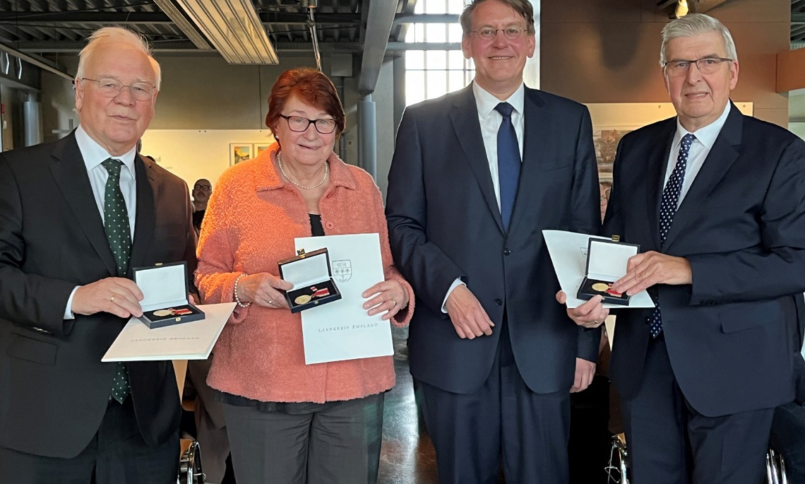 Geeste (pm). Im Emsland Moormuseum in Groß Hesepe (Gemeinde Geeste) überreichte Landrat Marc-André Burgdorf am gestrigen Dienstagabend (4. November) die höchste Auszeichnung, die der Landkreis Emsland zu vergeben hat: Er händigte den verdienten emsländischen Persönlichkeiten Edeltraut Graeßner, Bernd Busemann und Bernd-Carsten Hiebing die Emslandmedaille aus.